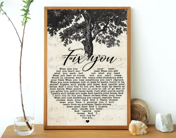 Fix You Lyric Poster Lyrics Love Poster Coldplay Lover Musical Notes Lyrics Love Vertical Poster No Framed