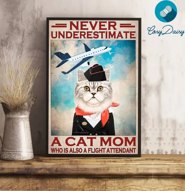 Flight Attendant Poster Cat Mom Flight Attendant Wall Art Home Decor Poster Print