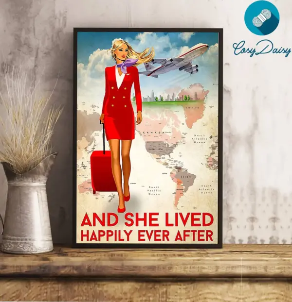 Flight Attendant Poster Flight Attendant And She Lived Happily Ever After Wall Art Home Decor Poster Print