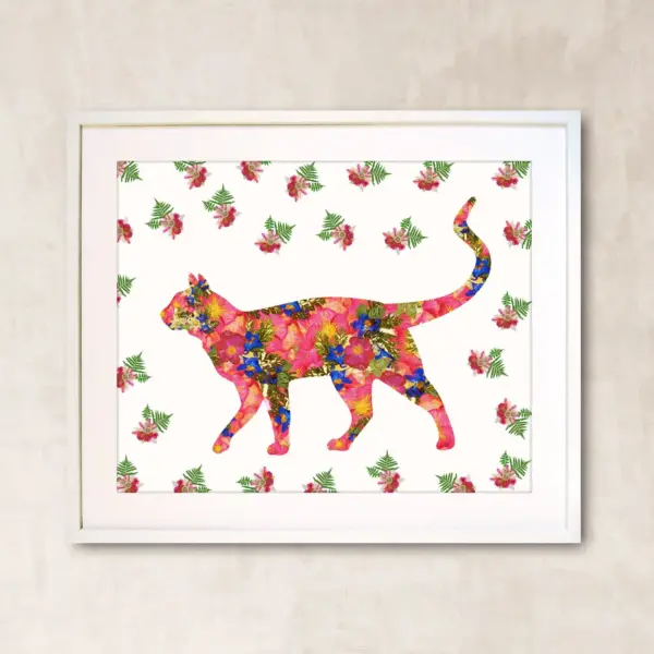 Floral Cat Cat Print Cat Lover Gift Cat Poster Nursery Wall Art Flowers Cat