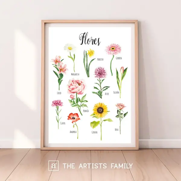 Flores Espanol Spanish Downloadable Prints Acuarela Montessori Ninos Educativos Que Aprenden A Pintar Guarderia Impresos Descargables Flower