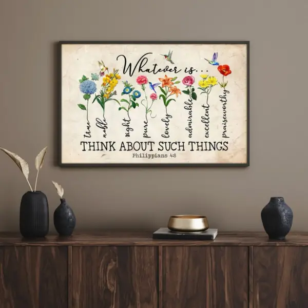 Flower Poster Philippians Whatever Is True Noble Right Think About Such Things Bible Verse Wall Art Printable Wall Art