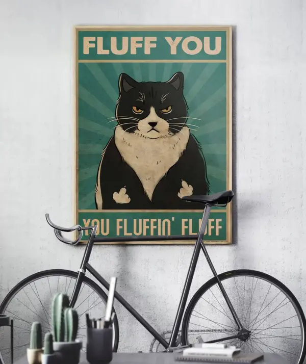 Fluff You You Fluffin Fluff Poster Vintage Cat Canvas Print Funny Cat Poster Funny Kitten Cat Lover Gift Cats Poster Black Cat Poster