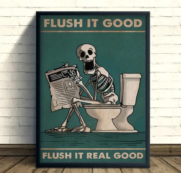 Flush It Good Flush It Real Good Poster Funny Skull Poster Skull Canvas Print Skull Wall Art Funny Bathroom Decor Bathroom Art Print
