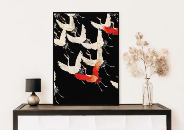 Flying Cranes Print Red White Cranes Japanese Art Print Bird Print Vintage Art Print Modern Art Wall Art Poster Print S