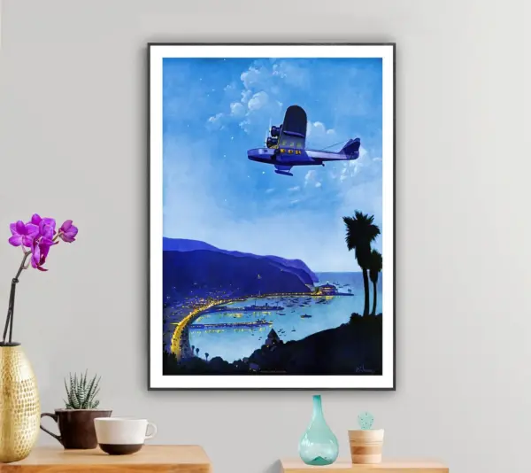 Flying Over Avalon 1940 Vintage Travel Poster Poster Paper Sticker Or Canvas Print Gift Idea