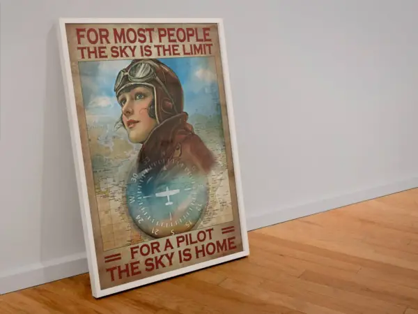 For Most People The Sky Is The Limit For Pilots The Sky Is Home Female Pilot Poster Motivational Art Print Canvas Art For Home Decor