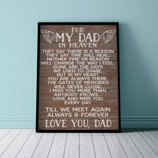 For My Dad In Heaven Poster Home Decor Wall Poster Home Poster Art Print Poster Wall Art Inspirational Saying Unframed