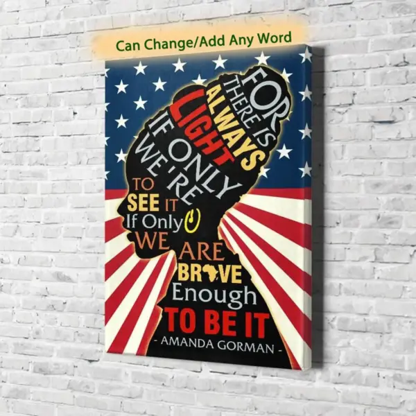 For There Is Always Light American Flag Canvas Amanda Gorman Wall Art Hang Print Poster Family Painting Home Decor House Decoration