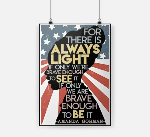 For There Is Always Light If Only Were Brave Enough Amanda Gorman Poster America Flag Lover Gift Hill We Climb