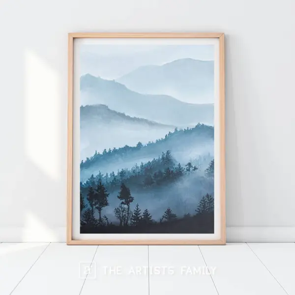 Forest Downloadable Prints Mist Fog Prints Painting Modern Wall Art Decor Mountains Trees Illustration Poster Green Tree Print Woods Boho