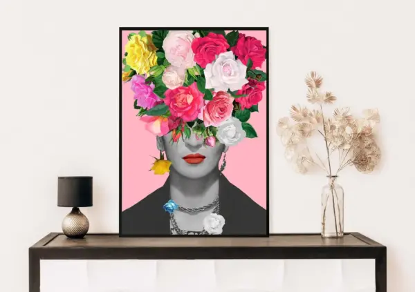 Frida Floral Poster Frida With Roses Modern Art Print Pink Art Poster Frida Poster Frida Print Wall Art Poster Print S