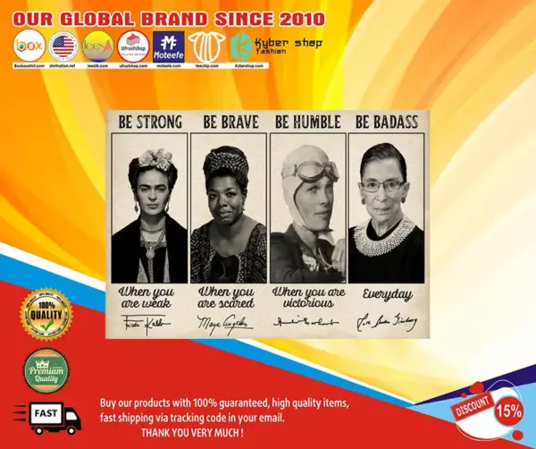 Frida Kahlo Maya Angelou Amelia Earhart Ruth Bader Be Strong Be Brave Be Humble Be Badass Poster