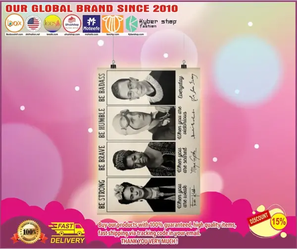 Frida Kahlo Maya Angelou Amelia Earhart Ruth Ginsburg Be Strong Be Brave Be Humble Be Badass Poster