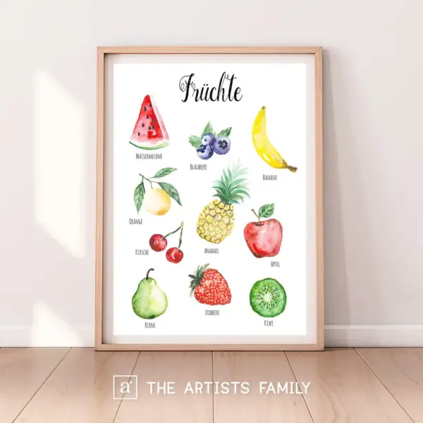 Fruchte Downloadable Prints Watercolor Montessori Educational Poster Kids Children Room Learning Painting Food Kitchen German Deutsche