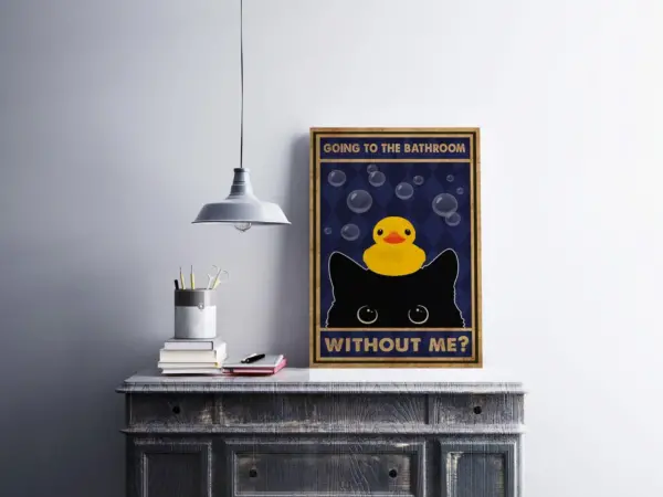 Funny Black Cat Poster Going To The Bathroom Without Me Cat Bathroom Wall Art Cute Cat Print Black Cat Gift Canvas Wall Art Home Decor