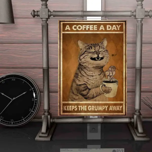 Funny Cat A Coffee A Day Keep The Grumpy Away Satin Portrait Poster No Frame Gift For Friend Poster No Frame