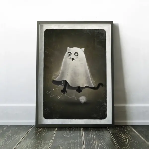 Funny Cat And Ghost Art Print Poster Cat And Ghost Illustration Pet Portait Poster Cat Lover Gift
