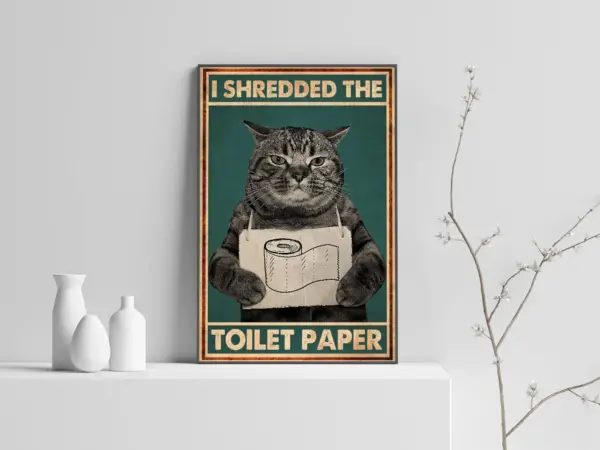 Funny Cat I Shred The Toilet Paper Poster Funny Bathroom Poster Cat Lover Gift Funny Kitty Print Bathroom Wall Art Signs For Home