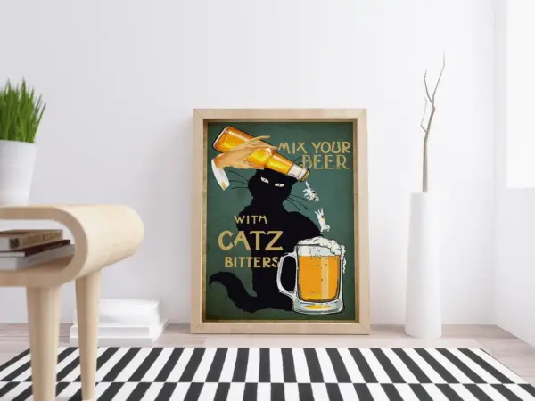 Funny Cat Poster Black Cat Vintage Poster Mix Your Beer With Catz Bitters Vintage Poster Love Beer Poster Funny Beer Vintage Poster