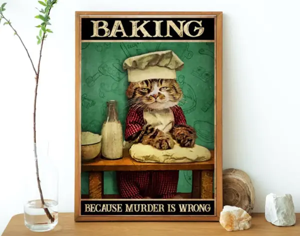 Funny Cat Poster Love Cat Baking Because Murder Is Wrong Vintage Black Cat Cat Lover Gift Cat Vintage Vertical Poster No Framed