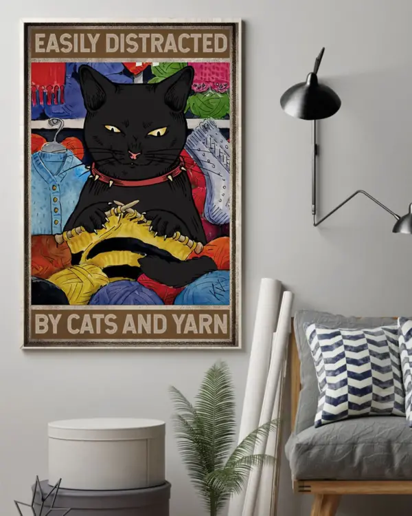 Funny Cat Poster Love Cat Poster Easily Distracted By Cats And Yarn Poster Vintage Cat Poster Love Cat Yarn Poster Cat Lover Gift M