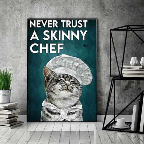 Funny Cat Poster Love Cat Poster Never Trust A Skinny Chef Poster Vintage Cat Poster Cat Lover Gift Cat Vintage Poster