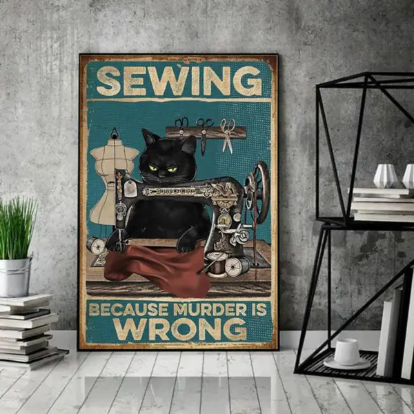 Funny Cat Poster Love Cat Poster Sewing Because Murder Is Wrong Poster Vintage Black Cat Poster Cat Lover Gift Cat Vintage Poster