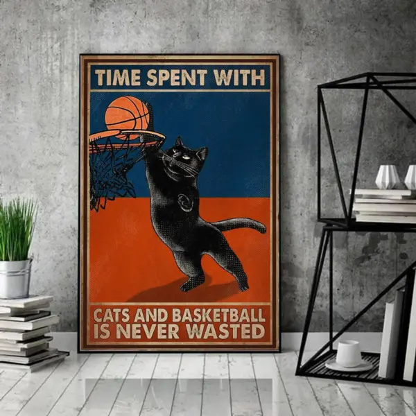 Funny Cat Poster Love Cat Poster Time Spent With Cats And Basketball Is Never Wasted Poster Vintage Cat Poster Basketball Lover Gift