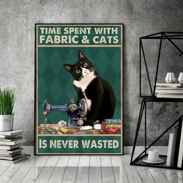 Funny Cat Poster Love Cat Poster Time Spent With Fabric And Cat Is Never Wasted Poster Vintage Cat Poster Cat Lover Gift