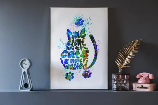 Funny Cat Watercolor Time Spend With Cat Saying Cats Wall Art Cat Lover Gift With Sign