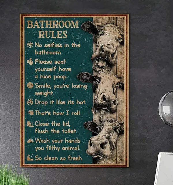 Funny Cow Poster Bathroom Rules Poster Funny Animal Print Funny Bathroom Poster Bathroom Wall Art Cow Canvas Print Funny Poster