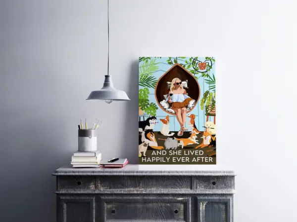 Funny Dog Poster And She Lived Happily Ever After Tropical Home Decor Dog Lover Gift Wine Gift Dog Canvas Wall Art Signs For Home