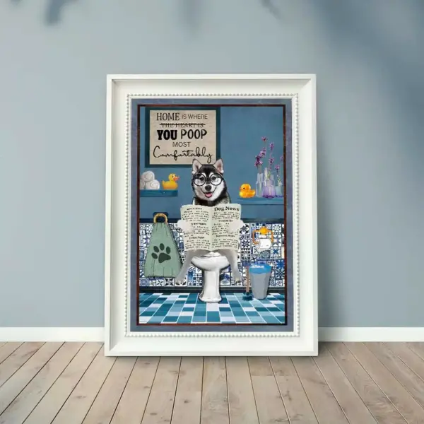 Funny Dog Poster Home Is Where The Heart Is You Poop Most Comfortable Bathroom Wall Decor Dog Lover Gift Animal Decor Husky Print