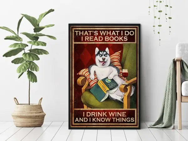 Funny Husky Dog Poster That S What I Do I Read Books I Drink Wine And I Know Things Poster Dog Lover Gift Retro Wall Art No Frame