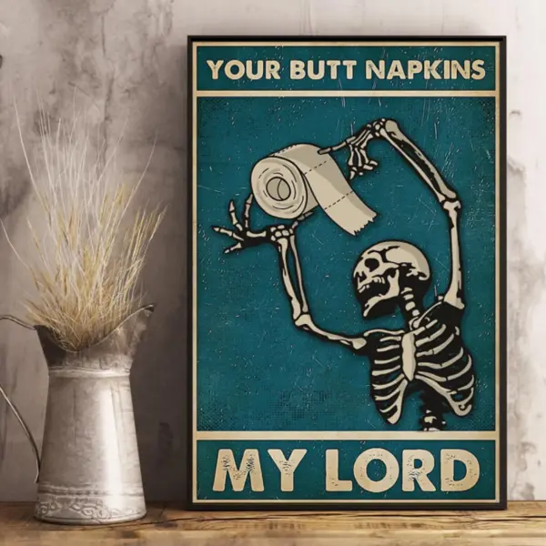 Funny Skeleton Your Butt Napkins My Lord Funny Poster Funny Bathroom Decor Poster Framed Matte Canvas