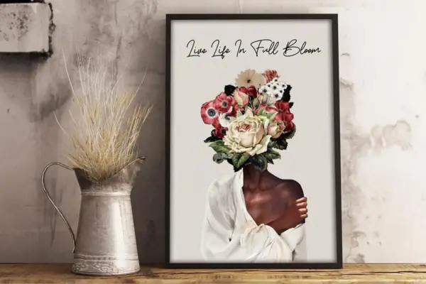 Garden Flower Pot Head Poster Canvas Live Life In Full Bloom Poster Black Women Art African American Art Girl Flowers Poster Wall Decor