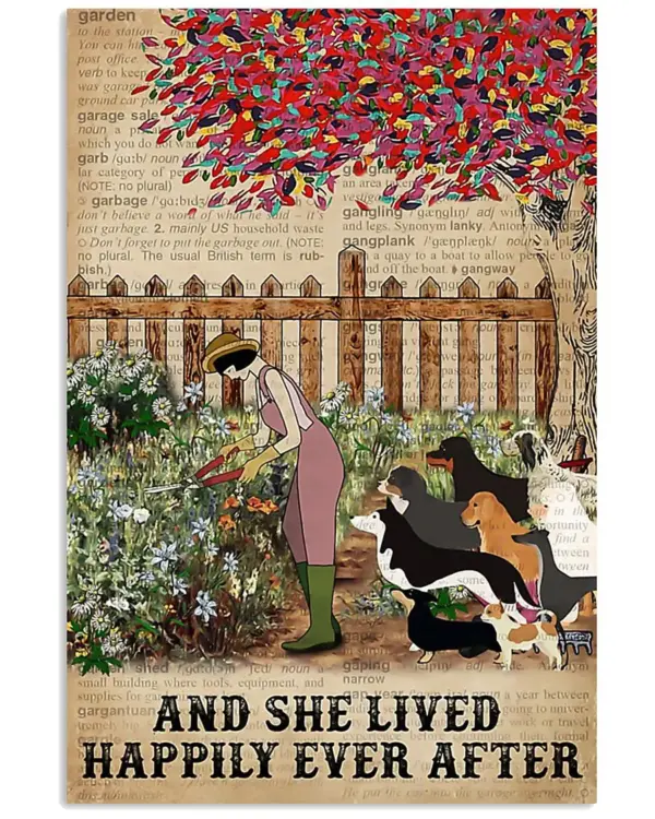 Garden Girl And Dogs And She Lived Happily Ever After Poster