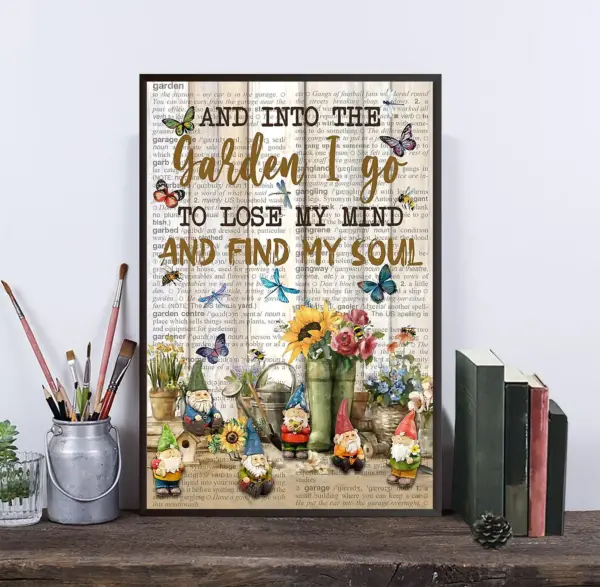 Garden Poster Pallet Garden Gnome And Into The Garden And Go To Lose My Mind And Find My Soul Poster Print Wall Art Home Decor 2107