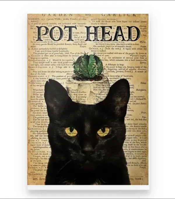 Garden Pot Head Cat Poster Framed Matte Canvas