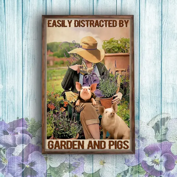 Gardener Gardening Girl Easily Distracted By Garden And Pigs Poster Farmer Farming Home Living Decor Poster