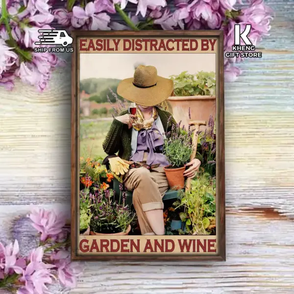 Gardener Gardening Girl Easily Distracted By Garden And Wine Poster Wall Art Print Home Living Decor Poster