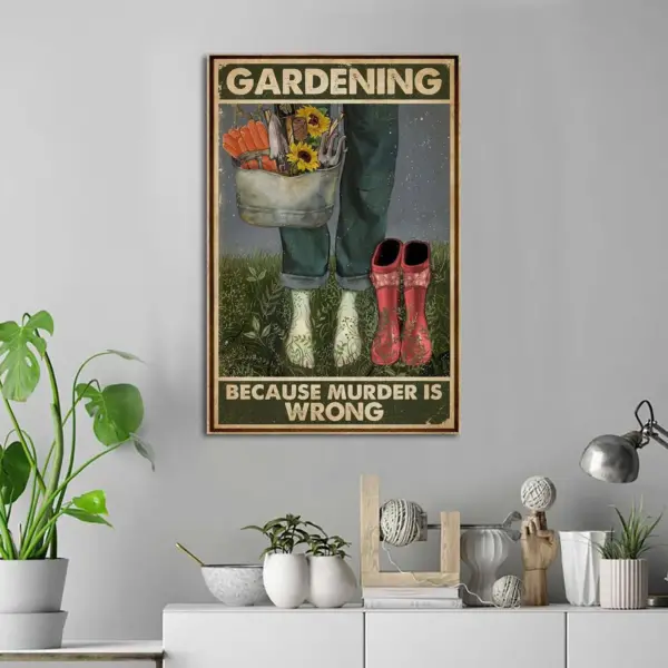 Gardening Because Murder Is Wrong Vertical Poster Garden Poster Botanical Print Floral Illustration Girl Garden