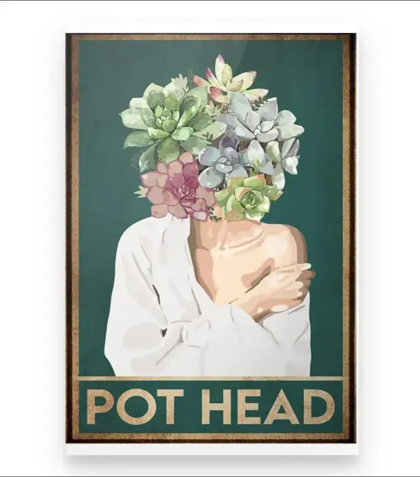 Gardening Girl Pot Head Poster Framed Matte Canvas
