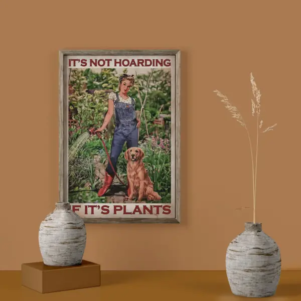 Gardening Poster It S Not Hoarding If It S Plants Poster Vintage Girl And Dog Wall Art Love Gardening Print Golden Lovers Poster