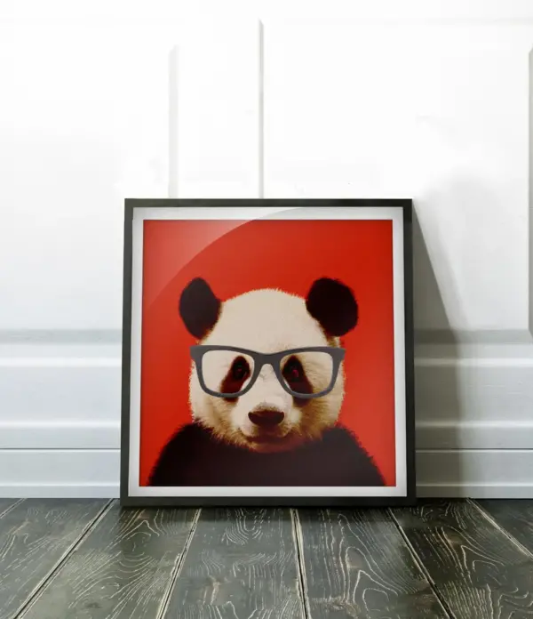 Geek Nerd Panda In Red Background Print Home Decor Wall Art Poster Gift Birthday Panda Cat Lover Gift Animal Print