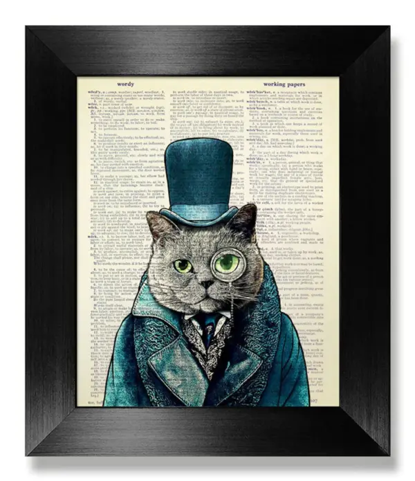 Geekery Cat Lover Gift Man Office Decor Steampunk Top Hat Cat Painting Original Artwork Funny Animal Art British Shorthair Clothes Poster