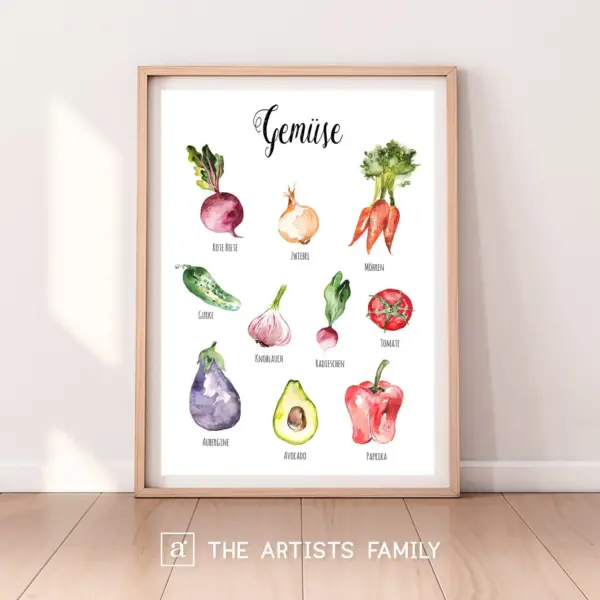 Gemuse Downloadable Prints Water Color Montessori Educational Poster Kids Children Room Learning Painting Food Kitchen Deutsche German