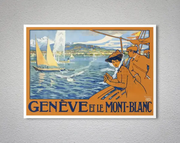 Geneve Et Le Mont Blanc Vintage Travel Poster Poster Print Sticker Or Canvas Print Gift Idea Christmas Gift
