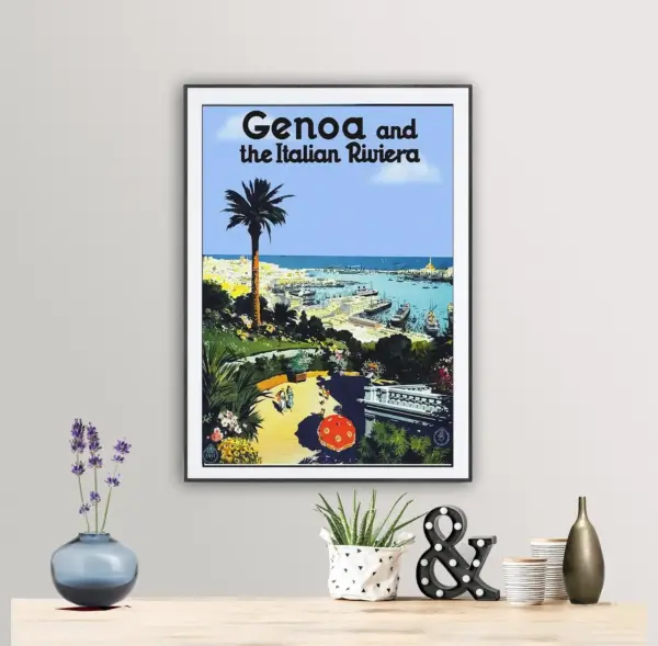 Genoa And The Italian Riviera Vintage Travel Poster Poster Paper Sticker Or Canvas Print Gift Idea